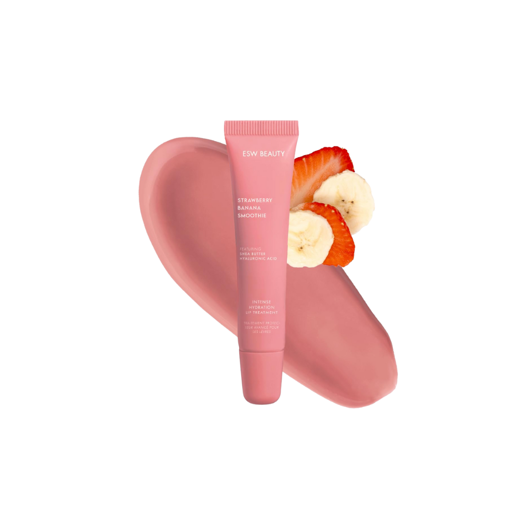 L'irrésistible Soin Lèvres Smoothie Fraise Banane associe des extraits de fraise et de banane riches en antioxydants à de l'acide hyaluronique hydratant et du beurre de karité. Ensemble, ils hydratent durablement et subliment vos lèvres d'un éclat naturel et sain grâce à leur douce teinte rose nude.