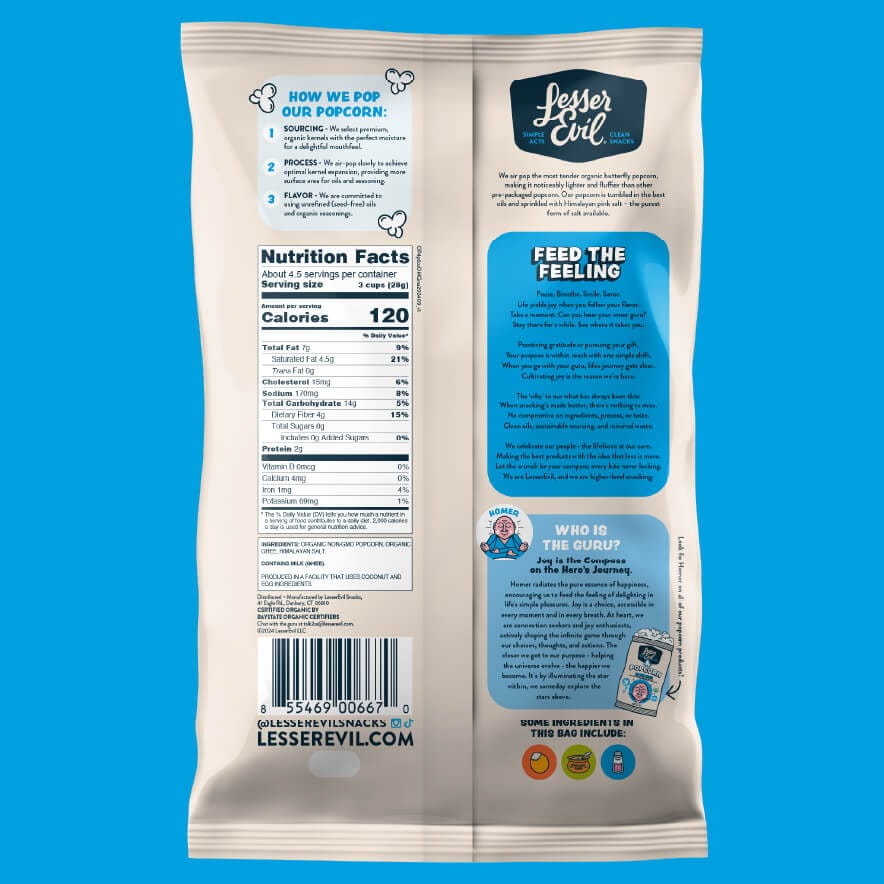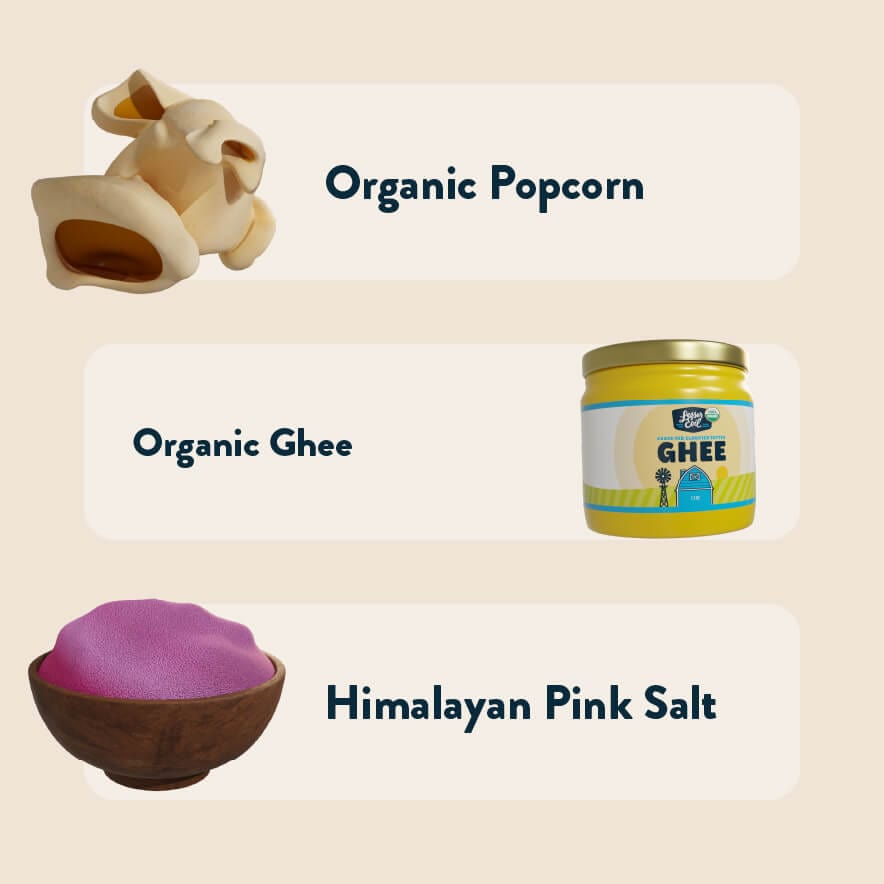 Popcorn bio sans OGM, ghee bio, sel de l'Himalaya