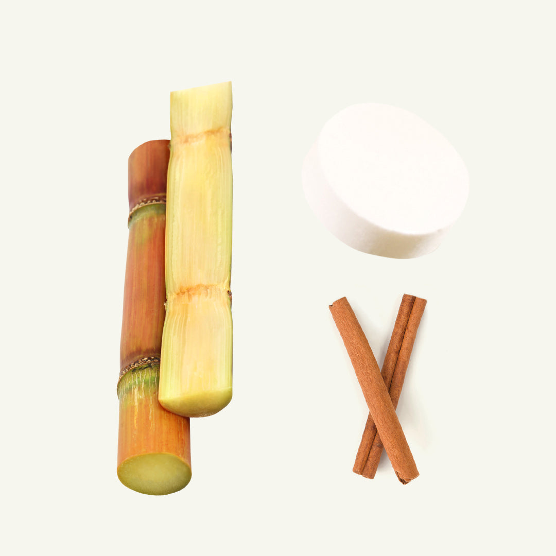 Sucre de canne, huile de cannelle, stéarate de calcium