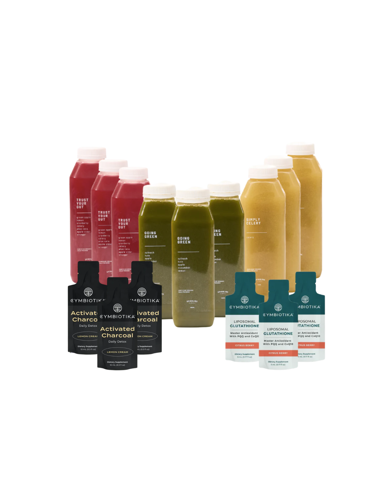On vous dit toujours de faire confiance à votre intestin, c'est pourquoi nous avons créé cette cure pour que vous puissiez enfin lui rendre la pareille. Que vous ayez mangé au restaurant une nuit de trop ou que vous veniez de terminer une cure d'antibiotiques, cette cure vous aidera à vous ressourcer et à apporter à votre corps ce dont il a besoin. Ce coffret soulagera les ballonnements et la digestion, tout en contribuant à équilibrer et restaurer votre microbiome. En plus des jus, nous avons ajouté des compléments de charbon actif et de glutathion pour renforcer les effets de cette cure.