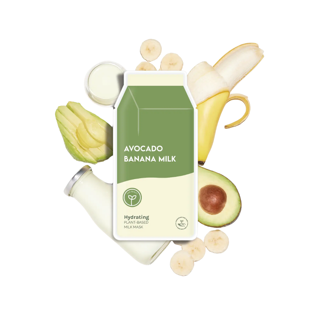 Inspired by avocado-flavored banana milk, this compostable Plant-Based Milk Sheet Mask is the go-to for all things hydration. Combining avocado and banana extracts, this rich blend provides deep moisturization and keeps your skin supple.